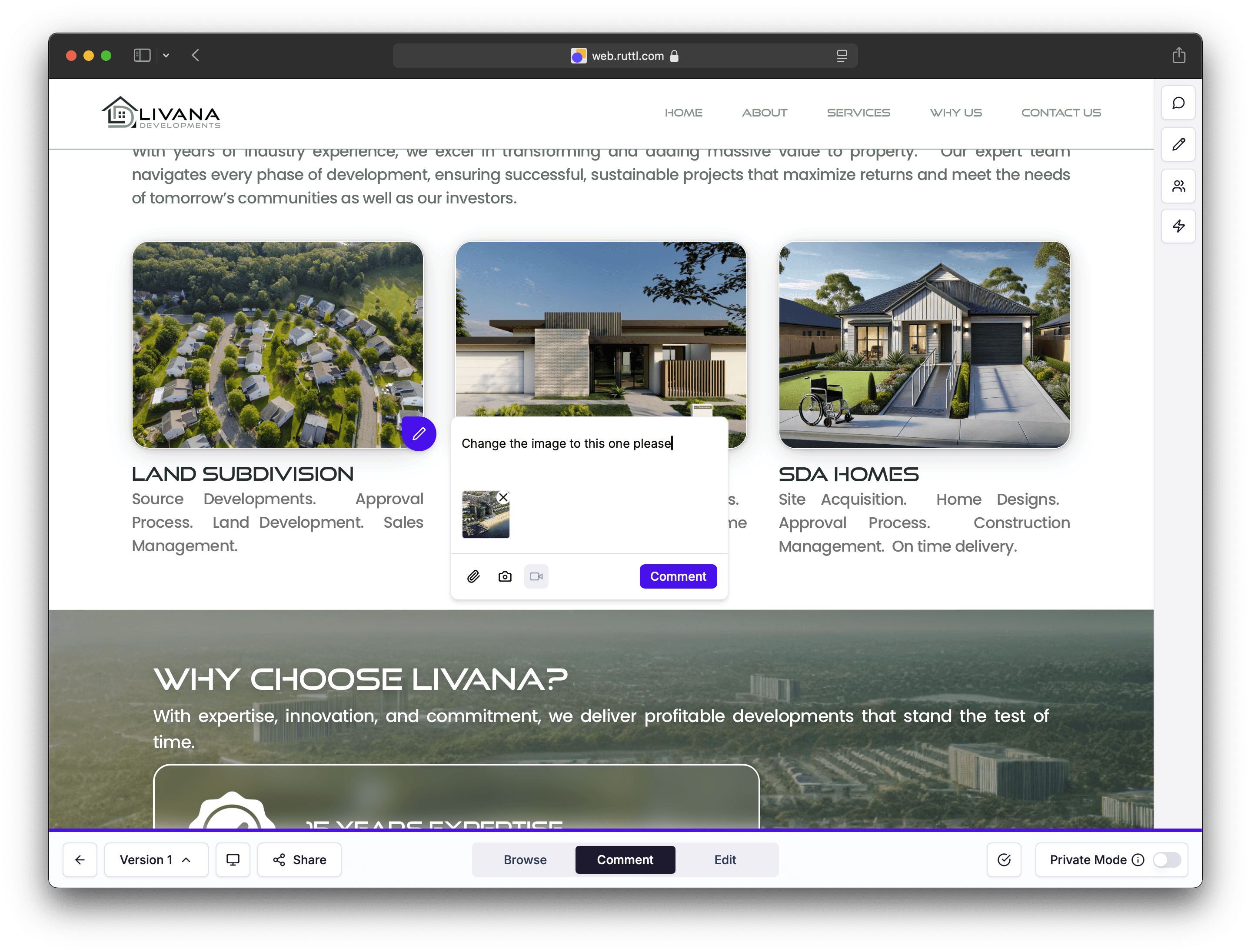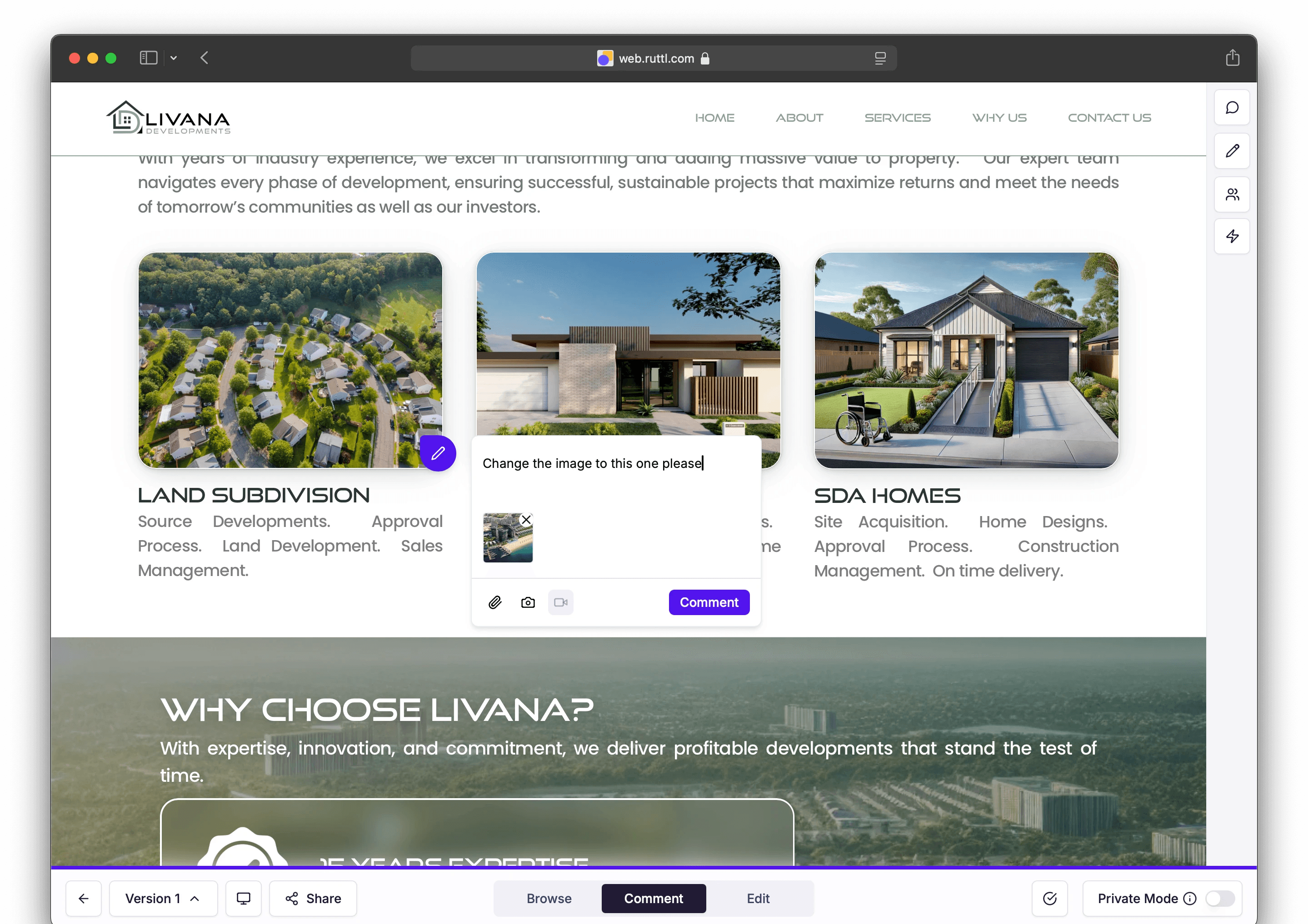 Leave comments directly on the live design, making feedback fast, visual, and crystal‑clear.